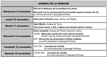 Dans le formulaire qui s’ouvre, choisir Envoi Infos paroisse à la ligne « Motif du contact » et FIP à la ligne « Inscription Newsletter » ACTUALITÉS PAROISSIALES Dédicaces de la Basilique du Latran Chaque 9 novembre, l’Église célèbre la dédicace de la basilique Saint-Jean-de-Latran, « mère et tête de toutes les églises de Rome et du monde ». Fêter la dédicace d’un bâtiment est une véritable profession de foi : notre Dieu veut demeurer au milieu de son peuple. En consacrant une église, nous reconnaissons que ce lieu devient signe visible de la présence du Christ, pierre angulaire de l’Eglise, source de la foi et de l’unité de tous les croyants. Père Vincent Van Rie JOURNÉES D’AMITIÉS Les Journées d’amitié de la paroisse auront lieu : VOUS Y ETES TOUS INVITES ! pour se rencontrer, se promener dans les différents stands, faire une pause au salon de thé, manger une crêpe, emmener les enfants faire une activité accompagnés de délicieuses patisseries Pour ces repas, il n’est pas nécessaire de s’inscrire à l’avance. Si vous souhaitez aider à installer : mercredi 12 et jeudi 13 novembre (spm.secretariat@free.fr) Vous aimez Jésus ? Vous chantez juste ? Vous pouvez arriver 30 minutes avant la messe ? Rejoignez notre chœur éphémère pour la messe de rentrée ! Pas d’inscription préalable, pas de répétition supplémentaire : il suffit d’être présent 30 min avant la célébration. Nouveau ! Rejoignez notre groupe WhatsApp pour recevoir les enregistrements des voix et vous familiariser avec les chants à l’avance. Vous pouvez venir nous retrouver à la fin de la messe ou nous envoyer un MAIL Ensemble, rendons cette messe encore plus belle par nos voix unies. · Hiver solidaire à Saint-Pierre-de-Montrouge, c’est offrir à des personnes vivant dans la rue un lit dans un lieu chauffé, un dîner et un petit déjeuner, pendant les mois d’hiver, comme en famille. Chaque soir, des bénévoles de la paroisse se relaient autour de la table pour accueillir les mêmes personnes de la rue. Ils sont également suivis par les bénévoles pour les aider, auprès des assistantes sociales, à constituer un dossier pour un logement, un emploi ou accéder aux aides auxquelles souvent ils n’accèdent pas pour des problèmes administratifs. Ce sont, pour les personnes accueillies, des moments de dignité retrouvée ; pour les habitants du quartier, les paroissiens et en particulier les jeunes, ce sont des rencontres qui convertissent le regard et changent la relation avec les plus démunis. RENCONTRE DE PRÉSENTATION Pour tout renseignement : MAIL Merci à tous les paroissiens qui ont déjà participé à la campagne 2025. Donner au Denier, c’est participer activement à la mission de l’église, à l’annonce de l’évangile. Le Denier est la principale ressource financière de l’église. Il permet de financer la rémunération des prêtres et des laïcs qui travaillent à la paroisse et de soutenir le diocèse de Paris. Le Denier n’est pas un don comme un autre. Au-delà d’être un marqueur de générosité, il est le signe concret de l’appartenance et de la fidélité à l’église. Donner au Denier, c’est l’occasion de prendre part à la grâce que Dieu nous fait chaque jour, celle de donner par Amour. Chacun est invité à donner ce qu’il peut, selon ses ressources et ses possibilités. Dans une paroisse comme la nôtre, dont vous connaissez et appréciez la diversité sociale, il est vital que les personnes dont les revenus sont plus importants participent en conséquence ; il est juste que chacun donne, même une somme très modeste, si ses moyens ne lui permettent pas davantage. Si vous ne recevez pas le courrier de la paroisse, vous pouvez prendre une enveloppe sur les présentoirs aux portes de l’église. Le mois biblique est animé par les prêtres et les pasteurs du XIVème arrondissement : les mardis 4, 18 et 25 novembre, à 20h30, à l’église protestante, 85 rue d’Alésia. Thème : « La violence ». – 18 novembre : Pasteur A. Jeuch (église baptiste, avenue du Maine) et Père Gabriel Würz (Notre-Dame du Travail) Si vous avez été baptisé enfant et que vous n’avez pas fait votre première communion ou votre confirmation, la paroisse vous propose une préparation à ces sacrements sur l’année scolaire 2025-2026. Prochaine rencontre : mercredi 19 novembre à 20h30, au centre paroissial, 9 passage Rimbaut. MAIL A l’occasion du 30° anniversaire de la publication de son rapport annuel sur la pauvreté en France, le Secours Catholique – délégation de Paris organise une table ronde exceptionnelle le : Inscription à la table ronde ICI « Celui qui chante prie deux fois » – Saint Augustin La paroisse recrute pour son service de chant liturgique MAIL Dans le cadre de l’enrichissement de nos célébrations, notre paroisse souhaite accueillir de nouveaux animateurs de chants. Cette mission importante contribue pleinement à la beauté de la liturgie et à la participation active de l’assemblée. Ce que nous proposons : Une mission joyeuse au service de la liturgie, un accompagnement pour les débutants, Une équipe sympathique et accueillante, La possibilité d’animer en binômes. Ce que nous demandons : Un peu de votre temps et de votre enthousiasme, Aptitude au chant (sans nécessité d’être un soliste confirmé) La volonté de participer à la beauté de nos célébrations et de travailler en équipe. Même si vous n’avez jamais animé, même si vous ne lisez pas la musique, même si vous êtes timide… venez ! AIDE ALIMENTAIRE ALÉSIA La collecte nationale de produits alimentaires aura lieu les vendredi 28 et samedi 29 novembre. Aldi, Lidl, Monoprix Soldat Laboureur, Monoprix Alésia, Carrefour Market. Chaque semaine les mercredi matin au centre paroissial nous distribuons des produits alimentaires à plus de 400 bénéficiaires. Chaque heure que vous pourrez nous accorder comp